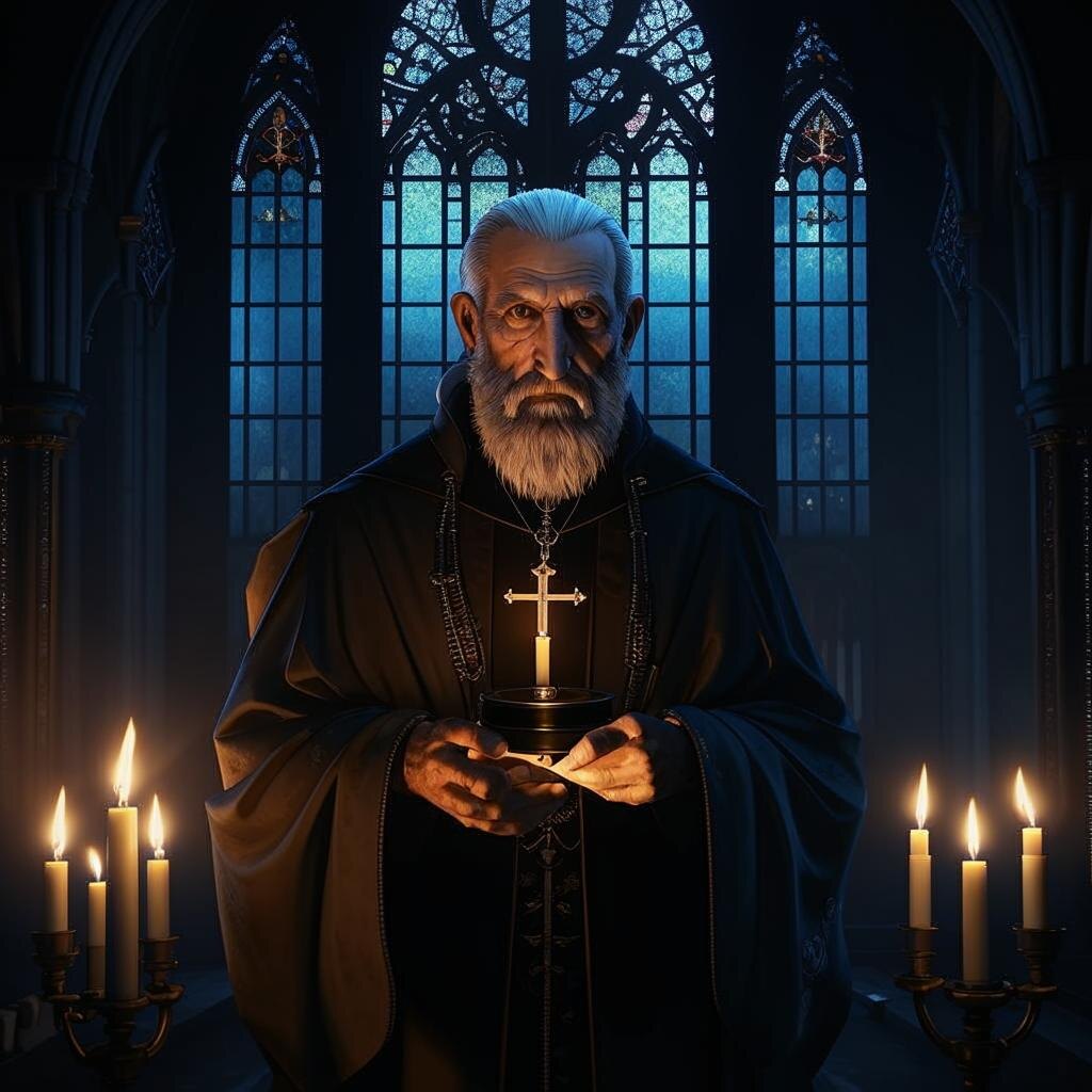 Мерцающий газовый свет отбрасывал длинные танцующие тени на каменные стены церкви Святого Иуды, что было привычным утешением для отца Майкла. В течение двадцати лет эта древняя церковь была его убежищем, а её гулкая тишина — бальзамом для его усталой души. Однако сегодня тишина казалась тяжелее, её нарушал лишь отдалённый печальный крик одинокой совы. В его душе поселилось беспокойство, холод, который не имел ничего общего с поздним октябрьским воздухом.