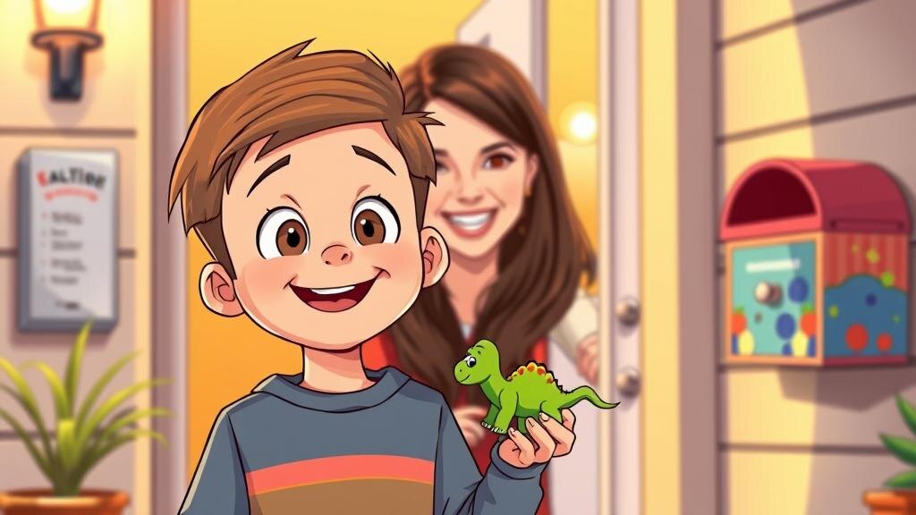 Почти каждый вечер, когда Даня с мамой возвращаются домой, их встречает один и тот же взгляд: зелёный глаз почтового ящика на первом этаже. Он такой старый, что от него всегда пахнет ржавым ключом и старыми открытками. Но вот уже несколько дней подряд из его небольшой щели что‑то выглядывает: то уголок жёлтой бумаги, то красная ленточка, то вовсе странная зубочистка, аккуратно торчащая набок. Наверное, кто-то обознался и бросил лишнее, думала мама. А вот Дане только дай повод для настоящего расследования! 🤔 В этот раз в щели свежего конверта торчал… маленький динозаврик из бумаги! 🦖 Даня осторожно вынул его, положил в ладонь и присмотрелся: на спинке фломастером было написано: «Почтовый привет! Кто найдёт — пусть улыбнётся!» В тот вечер Даня не мог заснуть. Больше всего его занимал вопрос: Кто оставляет эти странные подарки? Могли ли это быть соседи? Или кто-то из его дворовых друзей затеял игру? На следующее утро Даня поспешил в подъезд раньше всех. Поздоровался с тётей Верой —