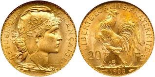 - монеты с надписью на гурте «Боже, защити Францию» (Dieu protège la France), которые чеканились с 1899 по 1906 год (примерно 43 млн экземпляров монет номиналом 20 франков),