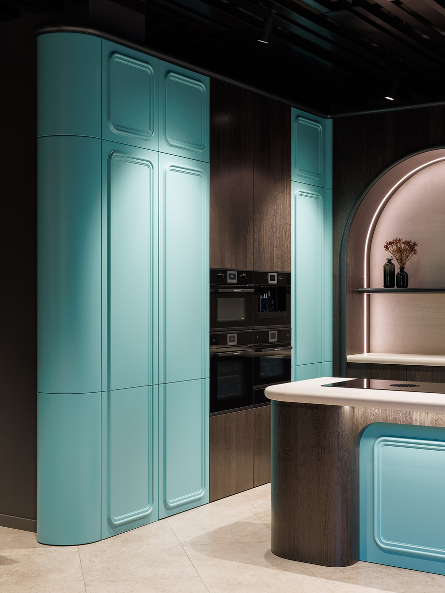 Освещение — важная часть восприятия интерьера. Мы всегда стремимся продумать не только форму, но и световые сценарии, которые раскрывают проект в разное время суток. Эта кухня — пример того, как свет меняет атмосферу. Днём композиция читается за счёт естественного освещения, вечером мягкая подсветка подчёркивает глубину материалов и архитектуру объёмов. Встроенные световые линии — не просто декоративный приём, а часть продуманной системы, которая помогает создать нужное настроение. В зависимости от сценария освещения пространство может быть выразительным и контрастным или, наоборот, тёплым и камерным. Всё это делает кухню живой и гибкой — такой, которая реагирует на ваш ритм. Фото: Иван Сорокин