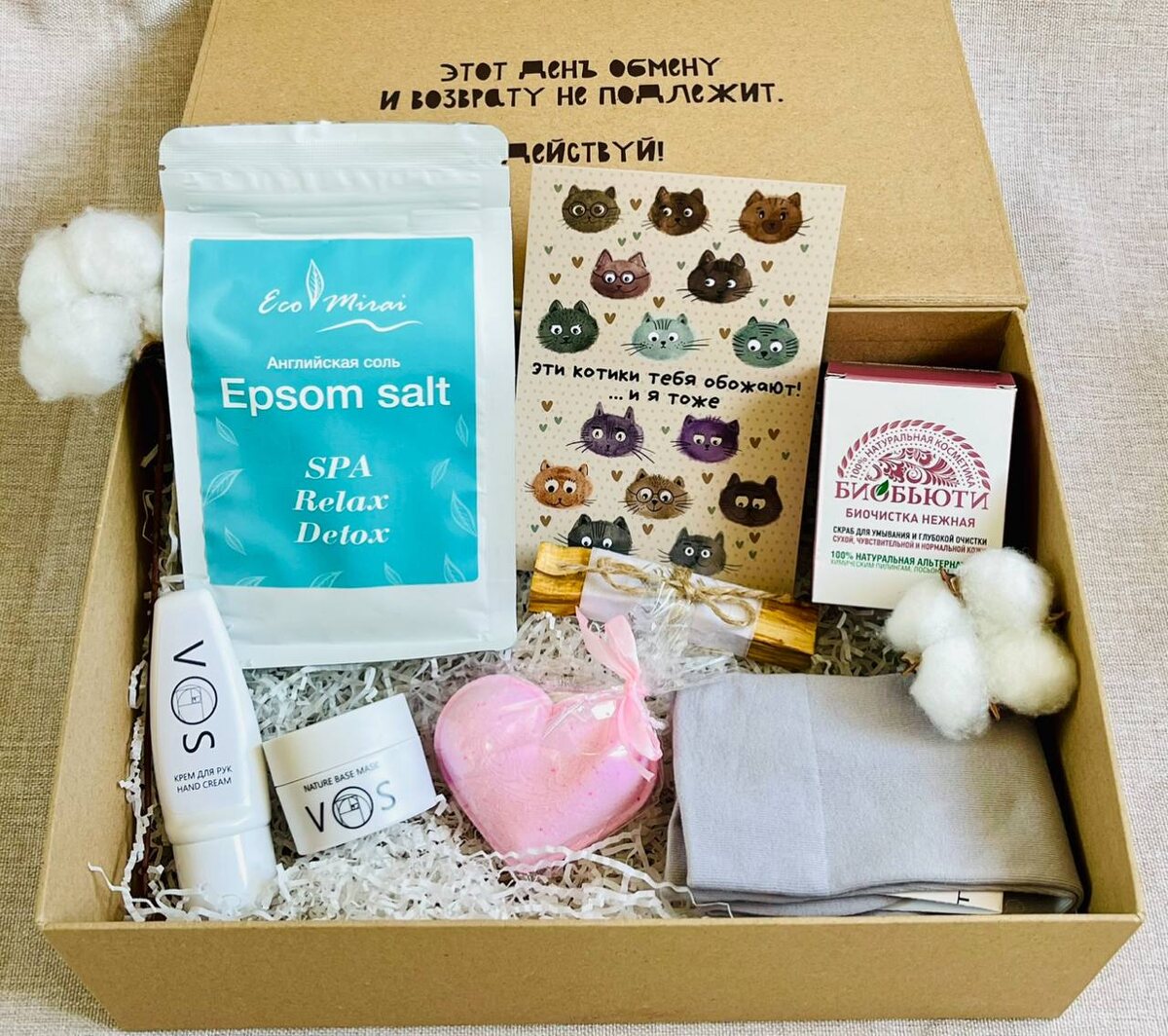 Бьюти бокс с котиками - в Трендах🔥 на Flowwow СПА набор для девушки ☝️попал в Тренды на Flowwow✨ У этого набора состав такой же безупречный, как и у других наборов bubobox: 🛀 расслабляющая ванна 🙂 уход для лица (натуральный пилинг и вечерняя глиняная маска с запахом матиолы) 🙌крем для бархатных ручек 🧦 носочки и 🪄пало санто Но мне кажется, что в тренде он из-за котиков на открытке 😽 Вы же тоже любите котиков?😉 Подарите (или подарите себе) коробочку с теплом и мурчанием 💌 Для заказа на Flowwow используйте промокод partners на скидку 11%✨ 🩷bubobox.ru
