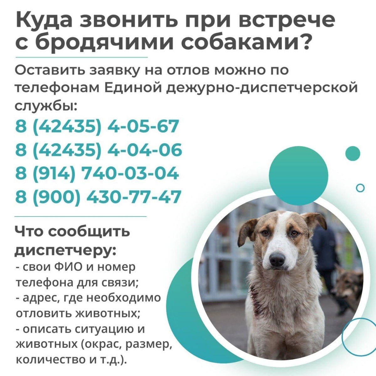 На территории муниципального округа продолжается работа по регуляции численности безнадзорных животных. Жителей просят не подкармливать бродячих собак, чтобы исключить формирование агрессивных стай. Напомним, заявку на отлов можно оставить по телефонам ЕДДС: 8 (42435) 4-05-67, 4-04-06,8 (914)-740-03-04, 8 (900)-430-77-47. Если вдруг ваша собака попала к отловщикам, посмотреть ее можно в ТГ каналах приютов "Братья Гав" и "Хвостик". 🦮Также обращаем внимание, что самовыгул животных в Корсакове запрещен. Собака должна быть на поводке, в наморднике и под присмотром владельца.