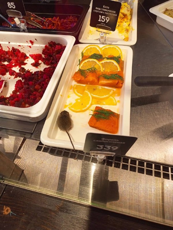 В популярной кулинарии на улице Кирова заметили маленькую мышку, которая наслаждалась блюдами заведения. После обнаружения грызуна, работники убрали все блюда с витрины и начали проводить санитарную обработку. Однако, заведение не закрылось сразу после инцидента. По словам представителя заведения, они оперативно провели дератизацию и списали часть продуктов. Также было предложено бесплатное угощение обратившемуся клиенку. На следующий день была подана жалоба на проведение внеплановой проверки, но пока не последовало никакой реакции.