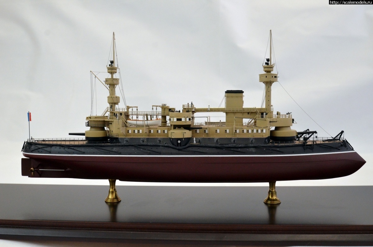 ИсторияПроект броненосца нового типа был разработан по инициативе морского инженера Шарля Уэна, главного конструктора броненосных кораблей французского флота с 1880 по 1897гг. В процессе проектирования проект подвергся существенным переработкам ввиду частой смены морских министров во Франции, каждый из которых имел свои взгляды на перспективы развития флота. Окончательный проект был утверждён только спустя четыре месяца после закладки. Прочитать полную статью: http://scalemodels.ru/articles/17528-kombrig-1-350-bronenosec-osh---plavuchijj-grand-otel-francuzskogo-flota.html