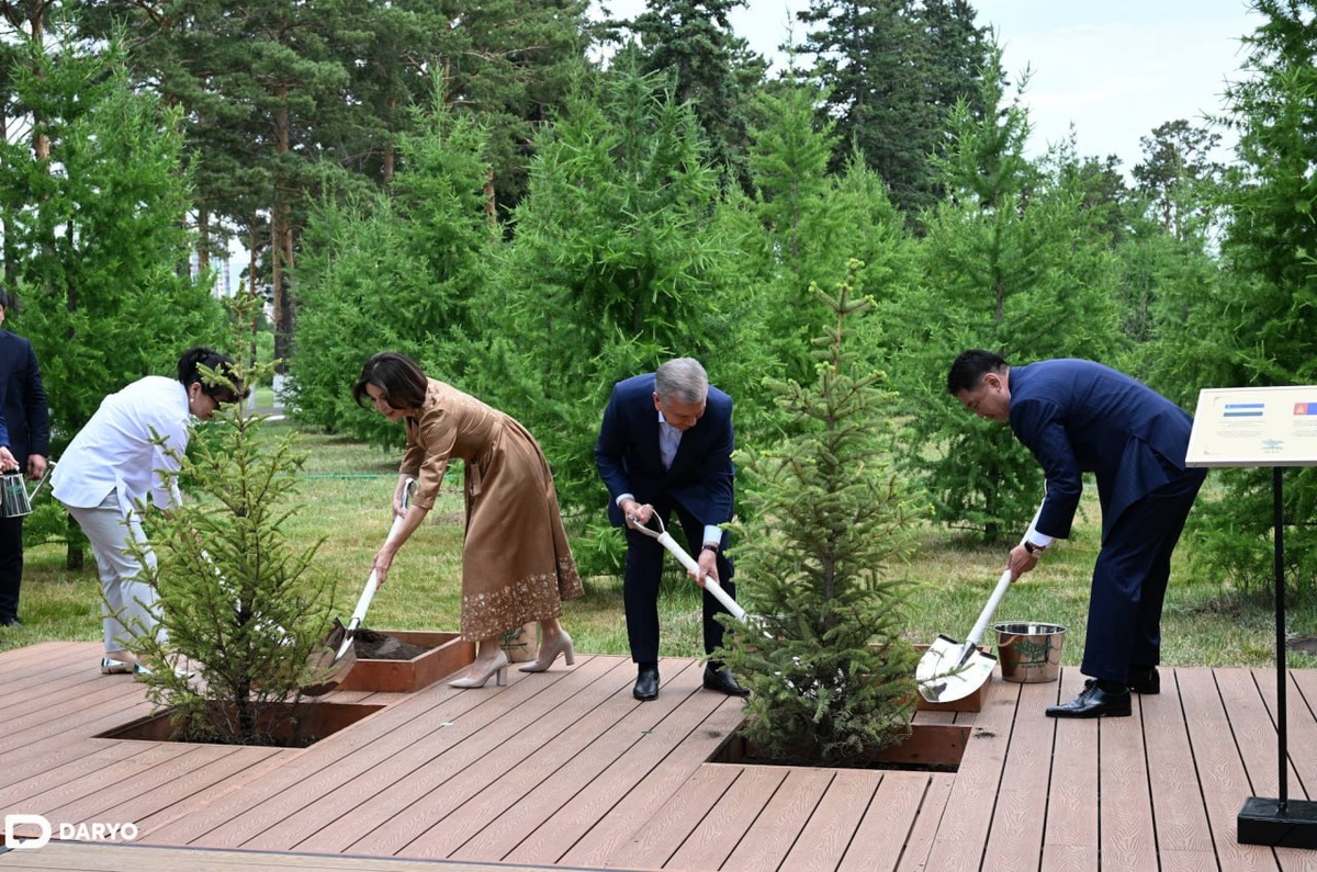🇺🇿🇲🇳 O‘zbekiston va Mo‘g‘uliston prezidentlari rafiqalari bilan birga daraxt ekdi