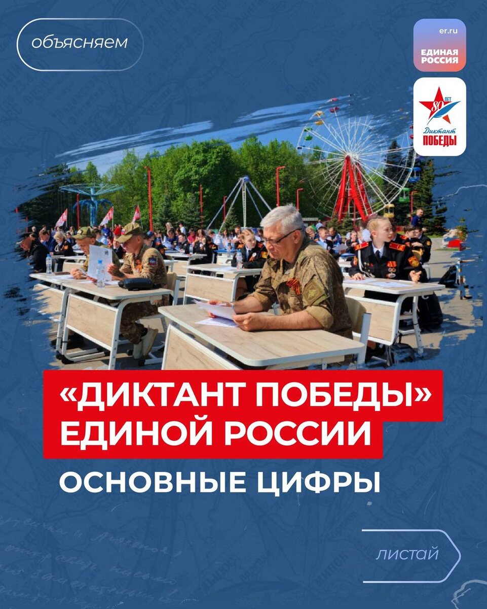 ✅ «Единая Россия» подвела итоги международной исторической акции «Диктант Победы». 25 апреля свои знания о ходе Великой Отечественной войны и также современных событиях в зоне спецоперации проверили более 2,75 миллионов человек. 📝 Подробнее об акции и о том, как можно узнать свои результаты — узнаете из наших карточек. #ЕдинаяРоссия #ЕР72 #ДиктантПобеды