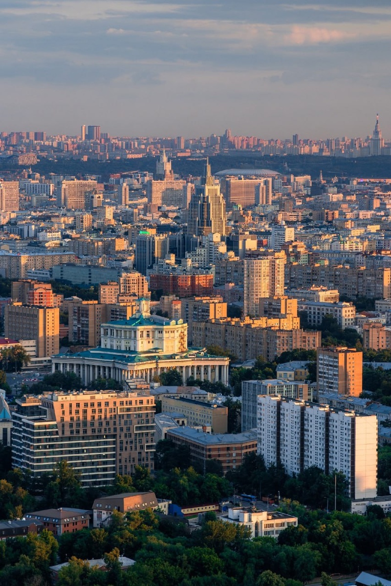 Поднялся на жилой комплекс «MOD», откуда открываются впечатляющие виды на Москву. На горизонте эффектно возвышается Останкинская телебашня. Она особенно выразительна в лучах закатного солнца.