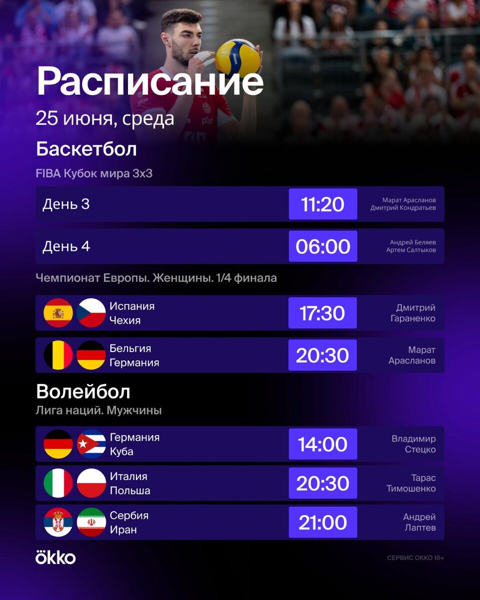 Есть что посмотреть и кроме футбола. Женский Евробаскет, чемпионат мира 3х3 и волейбольная Лига наций 🏀🏐