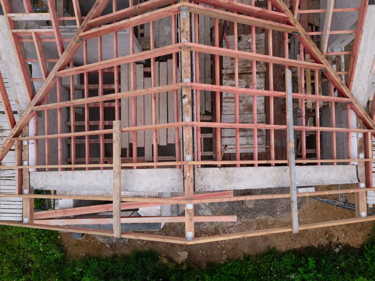Двухэтажный дом в окружении леса. В посёлке Синявино строится дом по индивидуальному проекту — ГБ-117. Отличительной особенностью этого проекта является то, что дом небольшой, но продуманный и включает в себя всё необходимое для семейной загородной жизни: - 2 спальни; - 2 санузла; - большую кухню-гостиную; - гостевую; - технические помещения. Общая площадь дома: 90 м² Жилая площадь дома: 40,91 м² И, конечно же, в проекте предусмотрена большая крытая терраса площадью более 22 м² для возможности насладиться в полной мере загородной жизнью! На данный момент готова стропильная система, следующий этап — утепление крыши! Подробнее об индивидуальном проектировании Вы можете узнать на нашем сайте. #Синявино_monolithouse