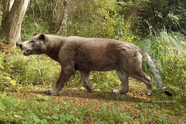Предки современных Хищных-Карнивор - Миацоиды появляются ещё при последних динозаврах, а в середине палеоцена разделяются на две своих эволюционных ветви: миацид и виверравид. Первые дали начало собакообразным Карниворам, а вторые - кошкообразным. Самое интересное это то, что первые "чистые" собакообразные и первые "чистые" кошкообразные по многим параметрам превосходят самых примитивных ныне представителей своих подотрядов. Причём эти самые представители хотя и очень схожи с базальными Карниворами, но представляют собой достаточно поздние ответвления от общего ствола. Вот такие вот выкрутасы эволюции самого интересного отряда современных млекопитающих. А история "чистых" собакообразных началась в среднем эоцене с появления интереснейшего отряда Амфиционид, которые по всем параметрам превосходили самых примитивных ныне собакообразных - Куньих. Представьте себе зверюгу с собачьей головой, стопоходящими лапами медведя, продолговатым туловищем куницы и длинным, пушистым кошачьим хвостом.