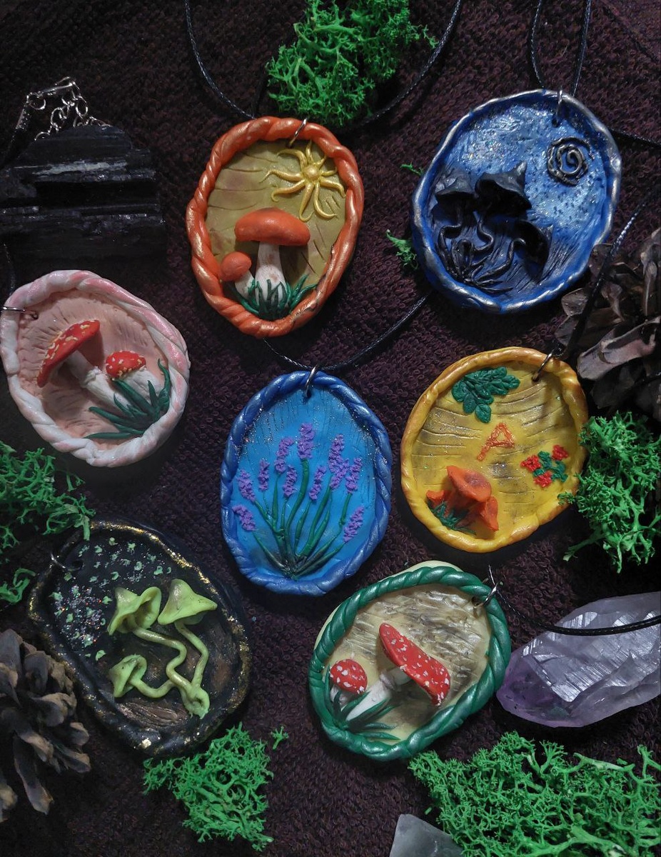 Как проходили мои тюленьи выходные 🍄 ☺️ После активной субботы организму требовалось спокойное восстановление, поэтому пару дней я просто тюленила дома. И создавала грибную коллекцию 🥰 >>Лаванда: а че, в смысле? << 😆 Какой кулон вам нравится больше всех?)) Я люблю их все, но если выбирать один, наверное выбрала бы синий с черными грибами, хотя мухомор на розовом фоне тоже прекрасен 🥰