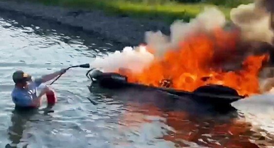 Гидроцикл с мужчиной и ребенком взорвался в заливе Ангары