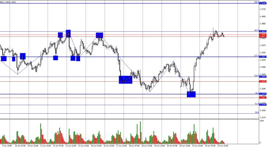 https://basechop.ru/wordpress/?p=47844 Добрый день, уважаемые трейдеры! На часовом графике пара GBP/USD во вторник продолжала процесс роста к зоне сопротивления 1,3611–1,3633. Это уже пятая попытка быков выполнить закрепление над ней. Закрытие котировок выше позволит рассчитывать на продолжение роста в направлении следующего уровня коррекции 200,0% – 1,3749. Отбой сработает в пользу доллара США и некоторого падения в направлении уровня Фибо 127,2% – 1,3527. Ситуация с волнами указывает на завершение теперь уже «медвежьего» тренда, который длился буквально неделю. Последняя завершенная волна вниз пробила лоу предыдущей волны лишь на несколько пипсов, а новая волна вверх с легкостью пробила предыдущий пик. В последнюю неделю медведи время от времени получали поддержку от новостей с Ближнего Востока, но завершение конфликта вновь заставило их отступать. Во вторник информационный фон был достаточно слабым, что не мешало трейдерам-быкам идти к своей цели. Война на Ближнем Востоке между…