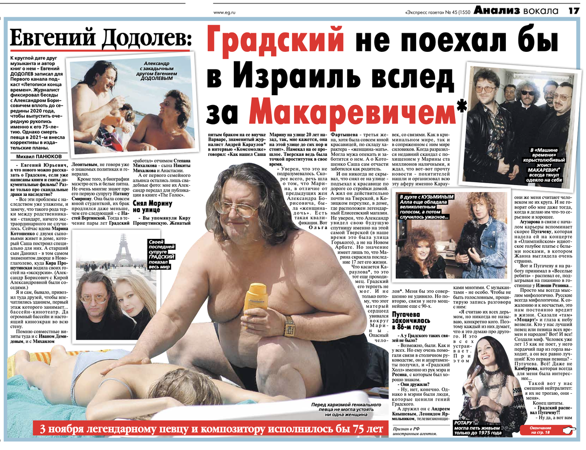 Евгений Юрьевич, а что нового можно рассказать о Градском, если уже написаны книги и сняты документальные фильмы? Разве только про скандальные драки за наследство?
