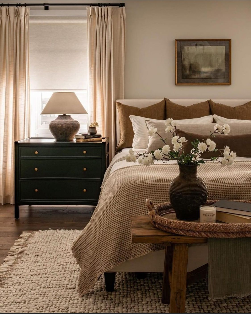 🧩 Фишка: на полу всегда должно быть что-то тёплое или фактурное. Даже маленький коврик у кровати создаёт «тот самый» уют.