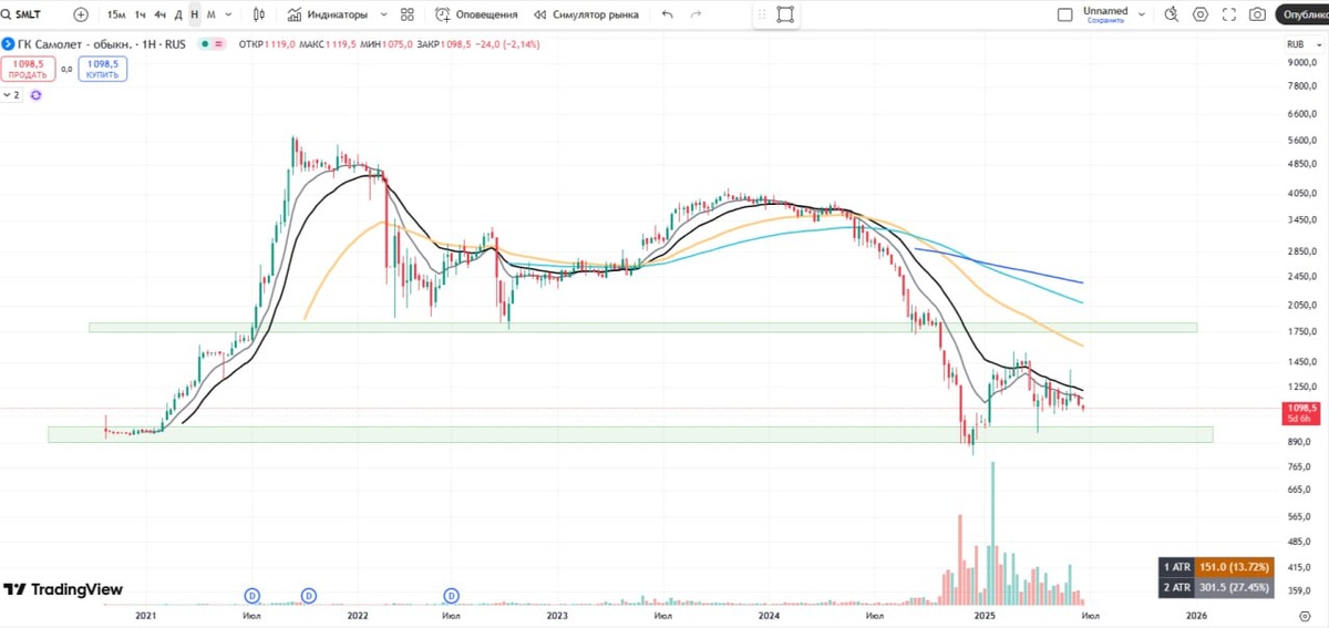 🏗Самолет. Застройщики снова пикируют? Разгон девелоперов под снижение ставки в июне был вполне ожидаем и понятен. Застройщики - один из проблемных секторов в экономике, где помимо высокой ставки и закредитованности давят и другие факторы, например отмены льготных ипотек. Локально какие-то программы еще действуют, по типу семейной или IT льготы, но этого все равно не достаточно чтобы возродить былые темпы. Очередное расстройство вызвало высказывание Минфина о напряженном бюджете. 🏠Мол дефицит и так растет, а с такими ставками расходы еще сильнее усугубляют бюджет. Так что идея Владимира Путина о льготной ипотеке на семьи с детьми до 14 лет пока нереализуема. Ипотека очень бы поддержала продажи строителей. Если в 2023 году выдача достигла 1,03 трлн рублей, а в 2024 году 0,83 трлн рублей, то на май 2025 картина еще печальнее: 0,23 трлн рублей. В мае 2025 года российские застройщики вывели на рынок 2,7 млн кв. м нового жилья, что на 28% меньше год к году, подсчитали в госкомпании Дом