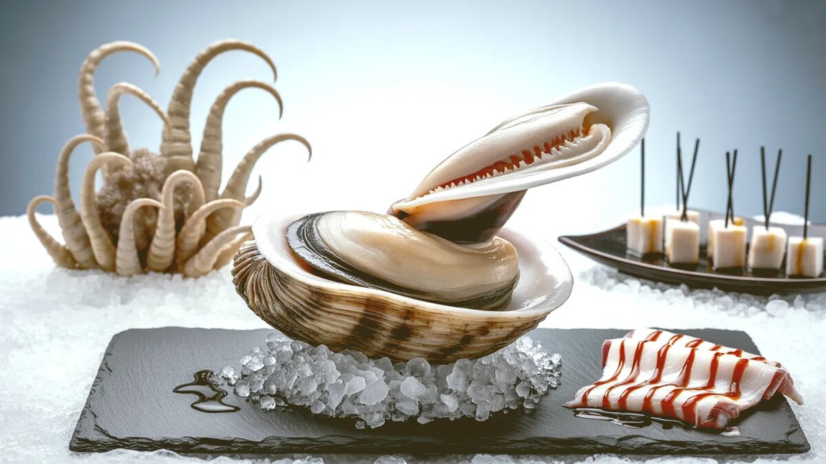 Когда мы говорим «морепродукты», в голове сразу возникают аппетитные картинки: креветки на гриле, мидии в сливочном соусе или нежный стейк из лосося. Но постойте... думаете, это всё, что может предложить мировой океан? Как бы не так! Приглашаю вас в короткое, но шокирующее гастрономическое путешествие по разным странам. Мы заглянем в тарелки к иностранцам и посмотрим на такие морские деликатесы, от одного вида которых бросает в дрожь. Пристегнитесь, будет странно! 1. Гуидак — самый нескромный моллюск Только взгляните на фото! Нет, это не реквизит из фильма для взрослых и не странный корень. Это Гуидак — самый крупный роющий моллюск в мире, который обитает у тихоокеанского побережья США и Канады. Главная «достопримечательность» гуидака — его огромный сросшийся сифон (тот самый «хобот»), который может достигать метра в длину! Именно его и едят. В Азии, особенно в Китае, он считается невероятным деликатесом и афродизиаком. Как это едят? Тонко нарезают и едят сырым (сашими) или быстро обва