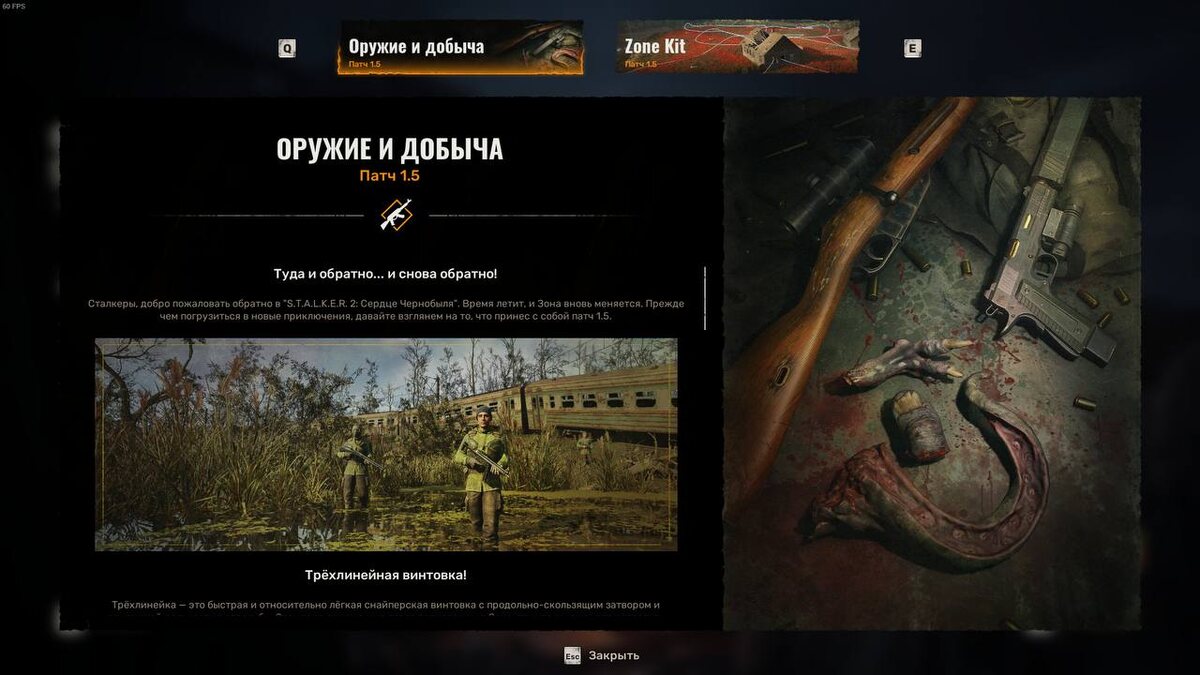 ☢️ Обзор нововведений патча 1.5 для S.T.A.L.K.E.R. 2: Сердце Чернобыля из главного меню игры.