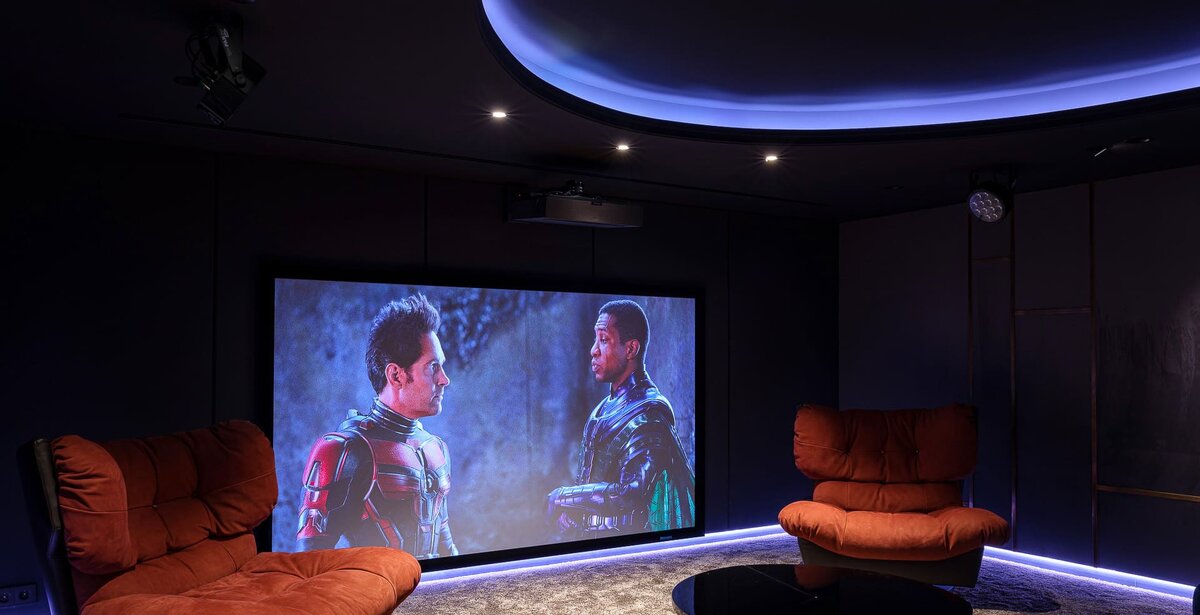 Этот проект не стал исключением, к нам обратился партнёр, выполняющий роль подрядчика по Автоматизации дома в престижном районе Московской области. Заказчик дал задание сделать правильный медиарум в помещении цокольного этажа.