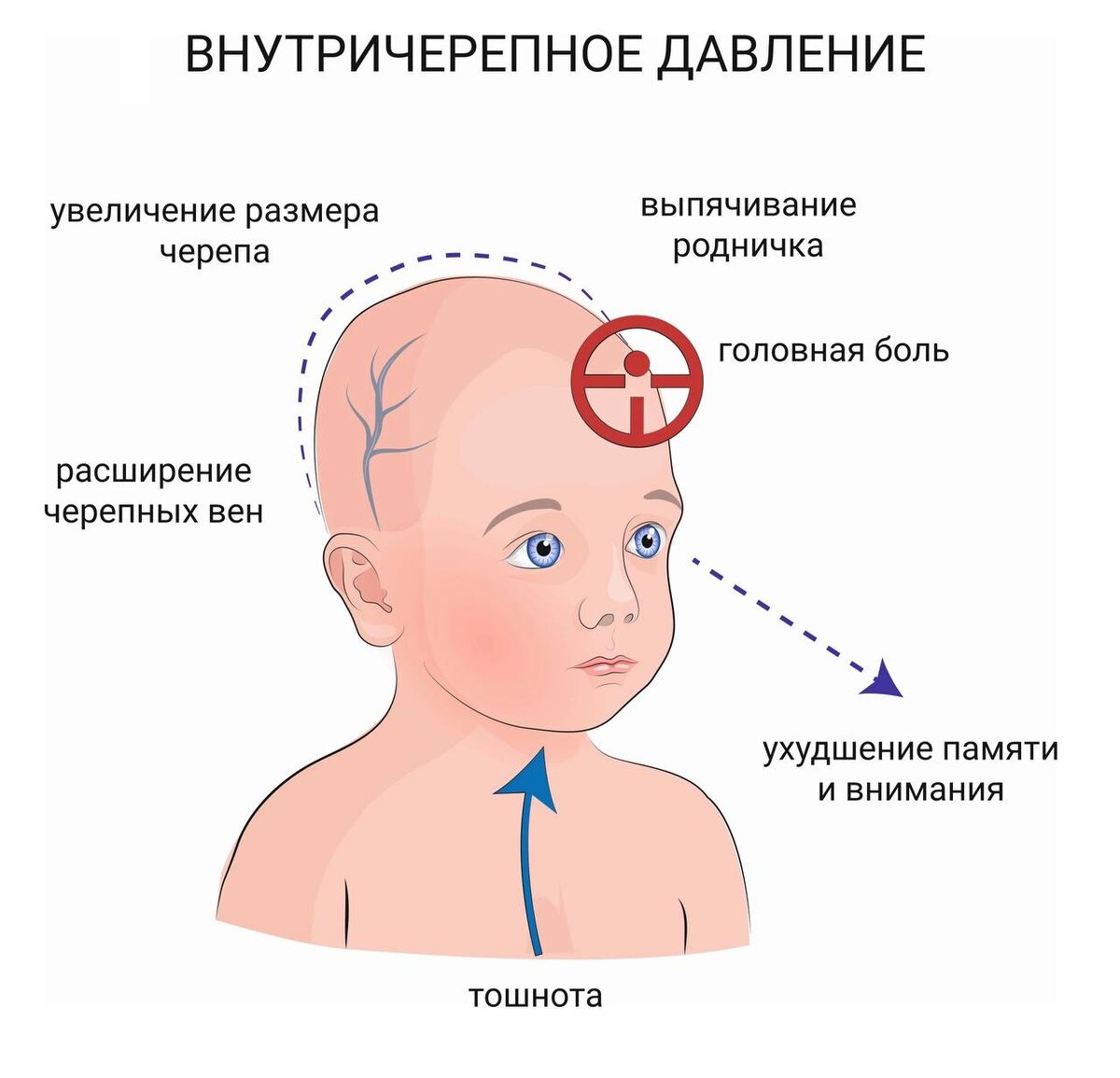 Обычно имеют ввиду "повышенное внутричерепное давление". Почему родители его так все боятся и приписывают там, где его нет? Давайте разбираться Мозг окружен спнециальной жидкостью – ликвором, которая питает и защищает нервные клетки. Ликвор непрерывно образуется и оттекает от черепа, за счет чего поддерживается ее постоянное давление. Это и есть внутричерепное давление – определенная сила, которая давит на мозг и стенки черепа. Почему может повышать внутричерепное давление? -Слишком много производится ликвора -Есть затруднения оттока ликвора из черепа -Есть какие-то препятствия на пути движения ликвора. -Наличие объемных процессов в черепе, места для жидкости будет меньше, ее давление также повысится. Основные причины повышения ВЧД: -Генетические заболевания -Кровоизлияния в мозг - сгусток крови блокирует ликворные пути. -Перенесенные инфекционные заболевания, травмы черепа и мозга -Гипоксия или асфиксия, вследствие чего расширяются наружние и внутренние ликворные пространства. -Пороки