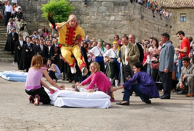 Жутковатый, но безопасный обряд в испанской деревне Кастильо-де-Мурсия (Бургос). Каждый июнь мужчины в дьявольских костюмах перепрыгивают через младенцев, лежащих на матрасах. Ритуал XVII века сочетает католичество и язычество: считается, что прыжки очищают детей от грехов. Родители добровольно участвуют, и за 400 лет ни один ребёнок не пострадал. Один из самых шокирующих, но легальных праздников мира.