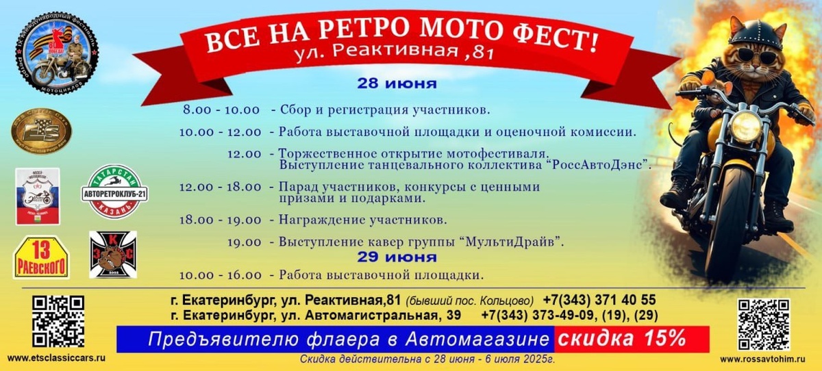 Дорогие участники и гости! Приглашаем всех любителей классических мотоциклов и ценителей винтажного стиля присоединиться к нашему масштабному событию. Это отличная возможность продемонстрировать свой раритетный байк, познакомиться с единомышленниками и окунуться в атмосферу настоящего мото-ретро. 28-29 июня 2025 IX Международный фестиваль ретро мотоциклов (Г. Екатеринбург ул. реактивная 81) Регистрация участников: http://application.etsclassiccars.ru Мы ждём вас ❤️ Не упустите возможность посетить наш музей! Мы рады каждому гостю и уверены, что у вас останутся незабываемые впечатления. 🤗 Адрес: Г.Екатеринбург ул. Реактивная 81 Автомасла и другие нефтепродукты высокого качества от проверенных поставщиков оптом и в розницу: Россавтохим #музей #искусство #история #культура #вдохновение #выставка #ретроавтомобили #ретро #екатерин Motorcycle •[ЕКБ] МОТО• #мотосезон2025 #екатеринбург #ekbmoto #moto Источник