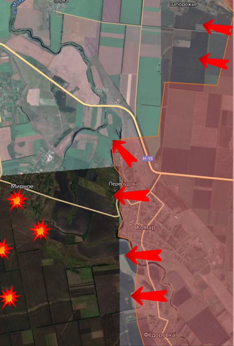 🪂 Великоновоселовское направление. Наши войска из 37-й бригады форсировали реку Мокрые Ялы и освободили Перебудову. В ходе боевых действий за село противник потерял до взвода живой силы. Между Комаром и Федоровкой зачистили территорию и выровняли линию фронта. В районе Карла Маркса (Мирное) и Воскресенки активно работают наши реактивщики, уничтожая живую силу, технику и вооружение противника. Также южнее Запорожья наши бойцы зачистили лесополосы и продвинулись широким фронтом на полкилометра вглубь. ▫️ Дневник Десантника