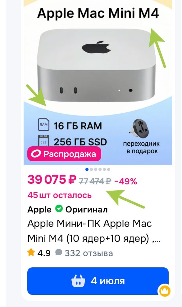 Есть шанс купить очень могучую штуку за реально копейки. У меня на работе mac mini m4/16gb и я признаюсь - это лучшее, что было за всю жизнь с точки зрения соотношения скорость vs. удобство :) Курс падает, я брал за 45к, сейчас можно взять за 39к - настоятельно рекомендую из опыта :) Монитор потом за 10к купите и будете наслаждаться. Русский ИТ бизнес