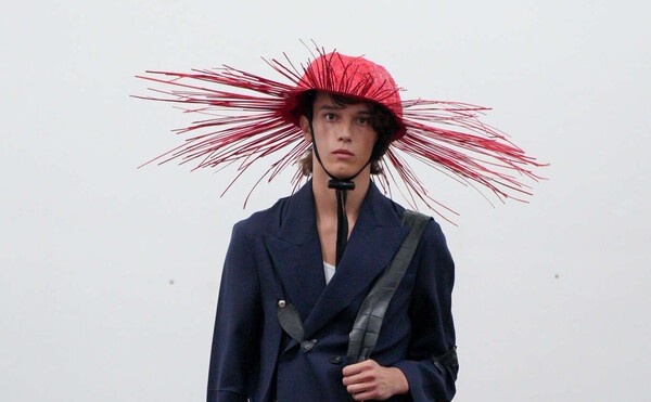 Состояние современной моды примерно такое: Обнимаю вас, маломодные мои, и завидую - сейчас вы получите дозу прекрасного! Настройтесь хорошо, будем смотреть лучшее с показов на Неделе мужской моды в Милане. Там были представлены коллекции весна-лето 2026. Не надо сразу руками лицо закрывать, рыдать и говорить, что не хотите таких весны-лета... Это просто в вас немодность протестует, отсталые взгляды и отсутствие вкуса! Пора меняться! Смотрим! У бренда Fiorucci меня больше всего поразил синий мужик. С ангелами. Делаем вывод - непростое время нас ждет весной-летом 2026... Бренд Setchu еще больше вселяет уверенность в сложность предстоящих сезонов. Мозги лучами во все стороны, мамина юбка, дефицит обуви... Что готовится для Европы?.. А вообще-то мне нравится! Сразу понятно - не хочешь проблем с неадекватными тараканами и кукухой из шалаша - не подходи. Давно пора было придумать красивую дизайнерскую каску! В основном - для самих дизайнеров, а то, сдаётся, падают они и об подиум немножко