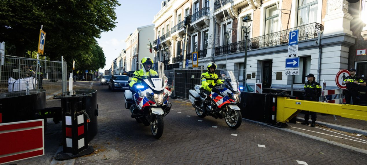 Пока главы стран НАТО обсуждают насущные вопросы финансирования обороны, обычные голландцы получили дополнительные проблемы или развлечения, кому как повезло. Надо сказать, что подобная встреча происходит в Голландии впервые, поэтому и меры безопасности, и реакция населения - на повышенном градусе. Место встречи определили в Гааге, и загодя огородили забором "зону отчуждения". Длина забора - 5 км. По городу понатыкали знаки "объезд" и "перекрытие дороги". Везде полиция, городская и военная, плюс помощники из числа студентов старших курсов. В эту зону попали обычные жилые дома, малый бизнес. Общественный транспорт на окруженных улицах, естественно, не ходит. Жизнь обывателей в этом районе приобрела напряженный характер, однако, судя по сюжетам в новостях, особо никто не жалуется - все понимают важность момента. Вот женщина выходит за периметр, чтобы выгулять свою собаку. Здоровается и обменивается парой фраз с вооруженным представителем охраны у забора. Нормально! А вот владелец мален