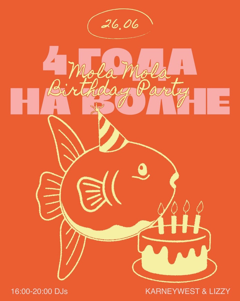 4 года Mola Mola🥳 26 июня — в кофейне на Алексеевской 6/16. С самого утра будут угощать сладкими трюфелями от шеф-кондитера ресторана BRERA, а с 16:00 танцы под открытым небом — за пультом Karneywest и Lizzy. #яместный