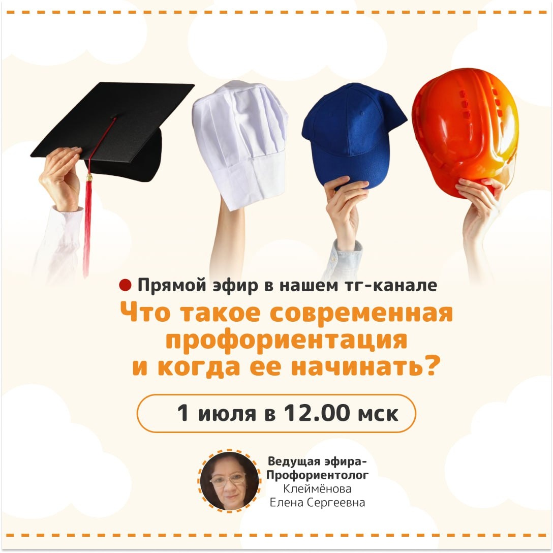 📢 Только для своих! Готовим для вас прямой эфир в этом канале. Что такое современная профориентация и когда ее начинать? Современный мир профессий меняется так быстро, что даже мы, взрослые, не всегда успеваем за трендами. ❓Но как тогда помочь ребенку сделать осознанный выбор? ❓ Что важнее для будущего: оценки в школе или soft skills? ❓ И главное — когда начинать готовить ребенка к выбору профессии? Приглашаем родителей и подростков на прямой эфир с нашим экспертом по профориентации Клеймёновой Еленой Сергеевной. 📅 Дата: 1 июля ⏰ Время: в 12.00 мск 🔍 В нашем канале ТГ @Семейный центр "Ученый кот" Поставьте напоминание в календарь и приходите на прямой эфир! О чем будем говорить? 🔹 Как изменилась профориентация — почему старые методы больше не работают 🔹 С какого возраста начинать и какие инструменты использовать для детей разного возраста 🔹 Топ-3 навыка будущего, которые нужно развивать уже сейчас 🔹 Ошибки родителей — что мешает ребенку сделать осознанный выбор 🔹 Практичес