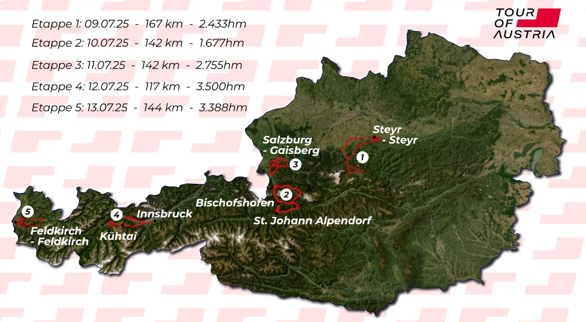 С 9 по 13 июля 2025 года в Австрии пройдёт 74-й Тур Австрии (Österreich-Rundfahrt – Tour of Austria) — престижная многодневная велогонка категории 2.1 UCI Europe Tour. В этом году гонка вновь состоится параллельно с Тур де Франс, что делает её важным событием для команд, не участвующих во французском Гранд-туре.