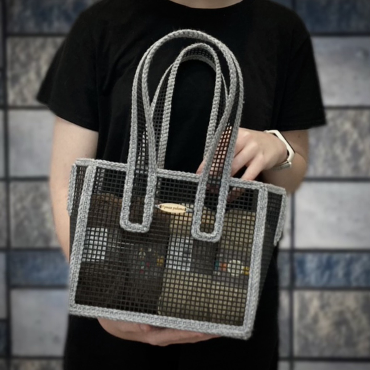 Она реально классная получилась! Простая сумка с помощью крючка.