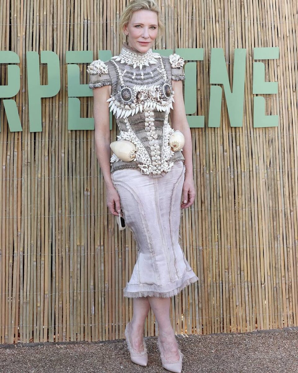 А Кейт Бланшетт никакая неделя моды не нужна, чтобы устроить собственное фэшн-шоу. На ежегодной вечеринке Serpentine Gallery в Лондоне актриса появилась в расшитом ракушками корсетном топе Dilara Findikoglu из последней осенне-зимней коллекции. Такой mermaidcore мы уважаем!