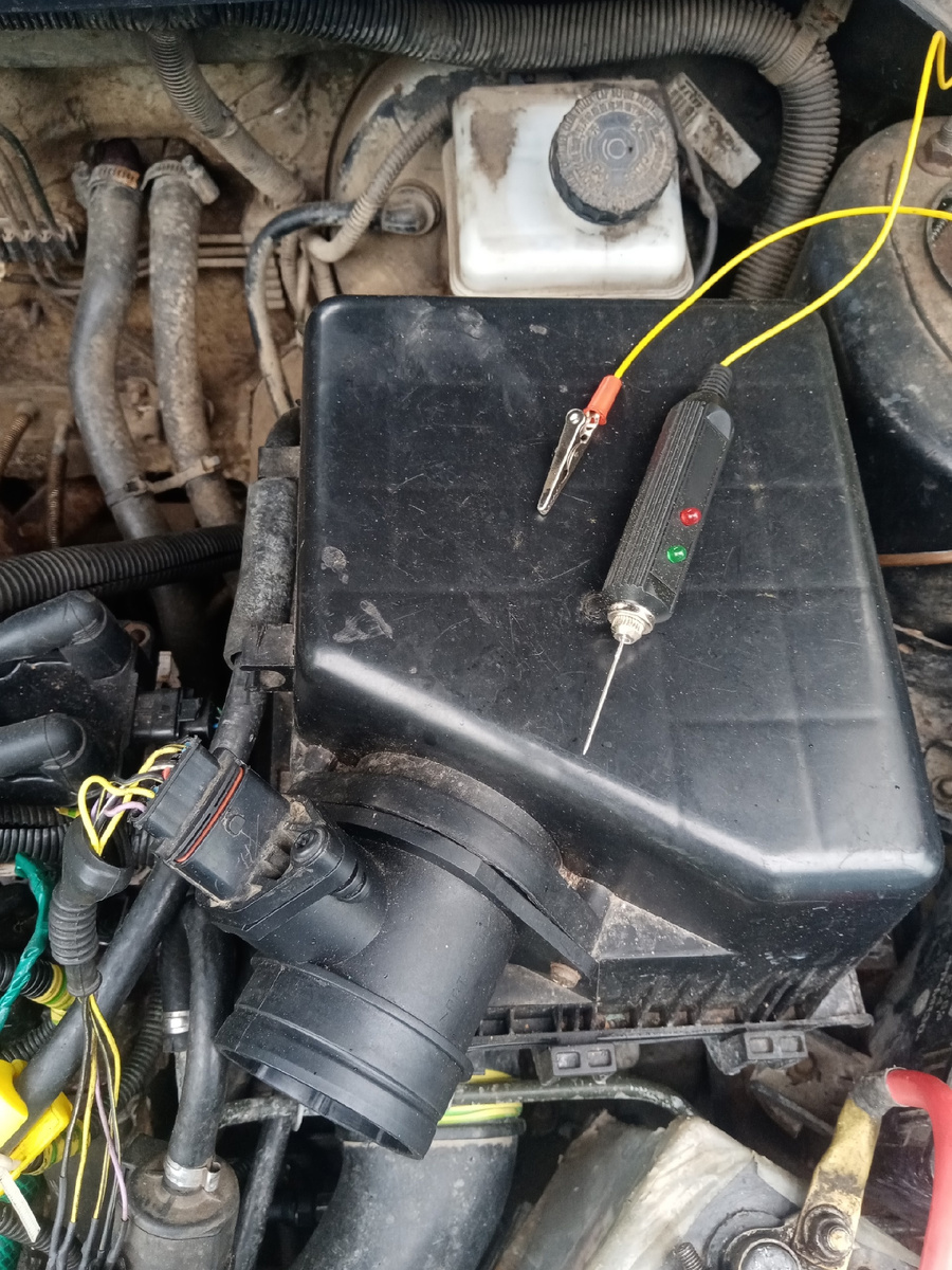 После вмешательства владельца автомобиль заглох. Произошло это после того, как он решил проверить сигнал на датчике ДМРВ диодной контролькой. После этого он вскрыл все жгуты в поисках неисправностей, но ничего не нашёл. После уже вызвал помощь. При осмотре ЭБУ была обнаружена сгоревшая дорожка. Ремонт ЭБУ решил проблему. Владельцу рекомендовано не мешать работе автомобиля!