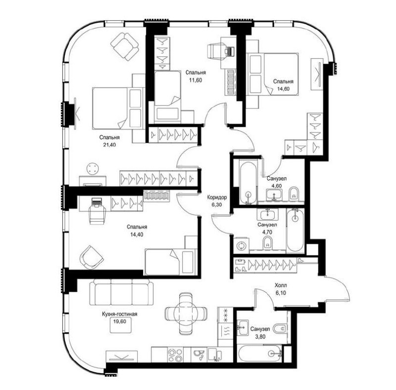 4к квартира с эркерными панорамными окнами, как вам такое планировочное решение