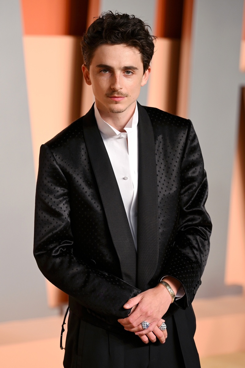 Тимоти активно экспериментирует не только с цветами, но и с фактурами, иногда сочетая несколько в одном образе. Помимо кожи, атласных тканей и вельвета, он позволяет себе такие необычные вещи, включающие в себя кружево и пайетки (вспоминаем его выход от Louis Vuitton на церемонии «Оскар» в 2022 году).