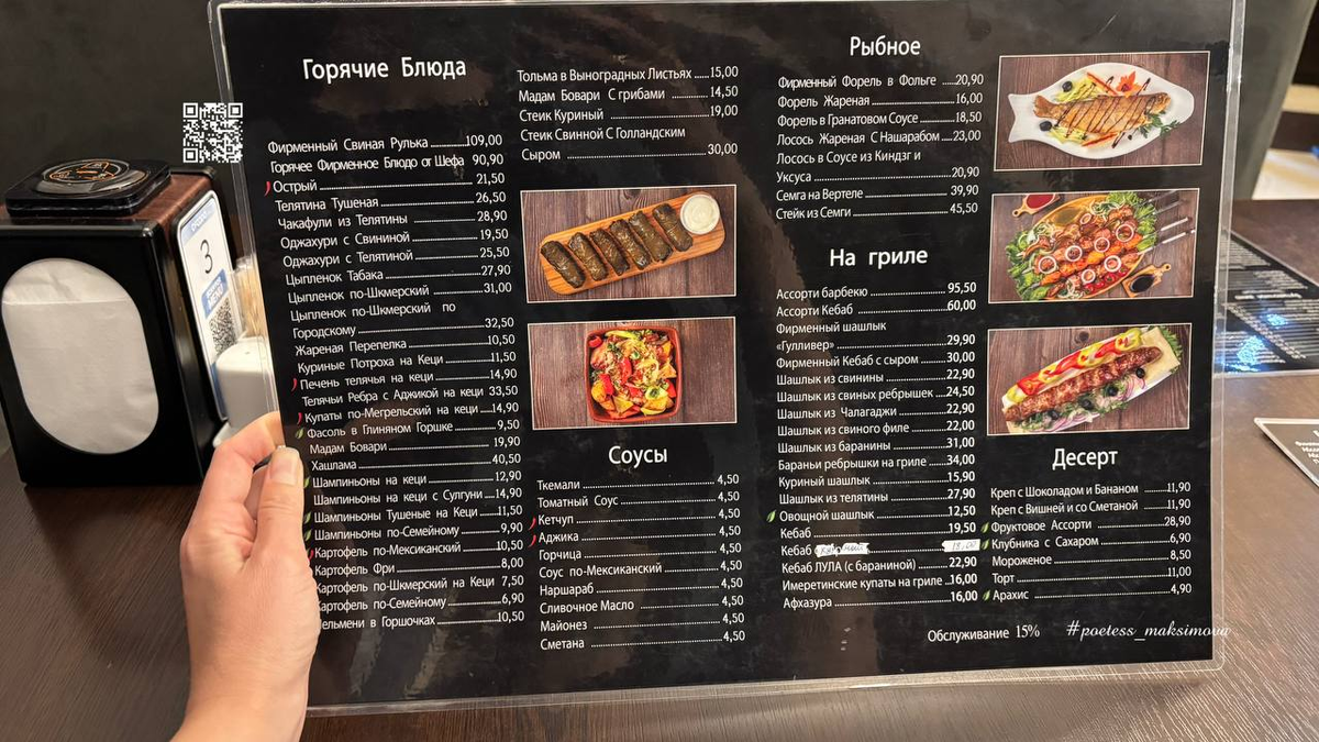 Грузинской еде можно покланяться, ведь здесь всё безумно вкусно: выпечка, супы, вторые блюда, салаты, закуски, напитки…. В таком путешествии голодным остаться нереально. Местная кухня отличается богатым ассортиментом мучных изделий, жаркого и обилием ароматных специй. Для местных блюд характерно использование трав, особенно кинзы и базилика, грецких орехов, зерен граната и сыров. А сколько тут в меню интересных соусов, пальчики оближешь! Что обязательно нужно попробовать? Всего по чуть-чуть. На компанию рекомендую брать сеты, так будем и экономичнее, и разнообразнее. Не бойтесь неожиданных сочетаний, отбросьте свой скептицизм в отношении некоторых продуктов, смакуйте всё. Если вы не любите, например, свеклу, то здесь она может раскрыться для вас по-другому. В конце концов, если не зайдет, можно оставить или скормить соседу слева. За мной муж доедал, например! Обязательные гости на вашем столе: хинкали с разными начинками, хачапури разных видов, пхали (овощные шарики со специями), мцвад