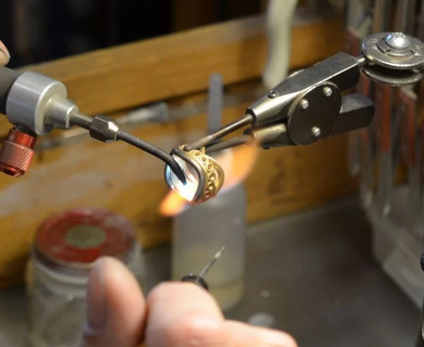 Без этого инструмента не получится ни спаять детали, ни расплавить, ни закрепить металл. В отличие от бытовых горелок, ювелирные паяльники имеют сверхточное пламя, которое нагревает только выбранную зону, в том числе очень маленькую. Мастера используют разные типы аппаратов: с подачей кислорода и газа, микро-горелки, индукционные печи. Для пайки изделий также понадобятся специальные плиты. Они могут быть сделаны из разных материалов и иметь разную форму. Главное – плиты должны быть устойчивы к воздействию высоких температур.