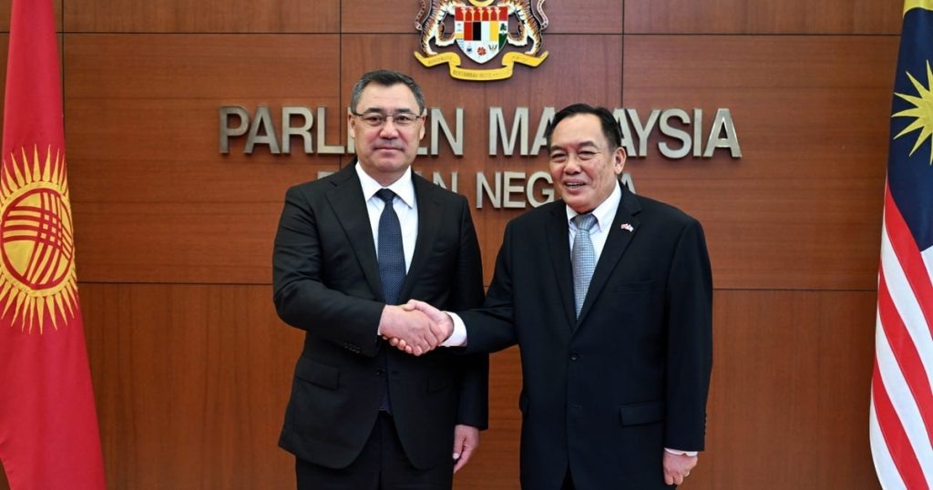 Кыргызстандын президенти Садыр Жапаров Малайзияга расмий сапары учурунда парламент жетекчилери менен жолугушуп, эки өлкө ортосундагы кызматташууну жана парламенттик байланыштарды өнүктүрүү маселелерин талкуулады. 🇰🇬 Президент Садыр Жапаров Малайзияга расмий сапарынын алкагында Сенаттын төрагасы Аванг Беми Аванг Али Басах жана Өкүлдөр палатасынын спикери Джохари бин Абдул менен жолугушту. 🤝 Жолугушууда эки өлкө ортосундагы кызматташтыкты өнүктүрүү боюнча пикир алмашуу болуп, айрыкча парламент аралык байланыштарды чыңдоо маселеси талкууланды. 📜 Сенаттын төрагасы Малайзиядагы мыйзам чыгаруу процесстери тууралуу маалымат берип, парламенттер аралык системалуу диалогду өнүктүрүүгө кызыгуусун билдирди. 🌐 Садыр Жапаров Кыргызстан менен Малайзиянын ортосундагы достук мамилелерди бекемдөөгө өзгөчө көңүл буруп, парламенттер аралык кызматташтыкты тереңдетүү мүмкүнчүлүктөрүн белгиледи. 📈 Президент парламенттер аралык байланыштар саясий диалогду тереңдетүүгө жана мыйзам чыгаруу чөйрөсүндө тажр