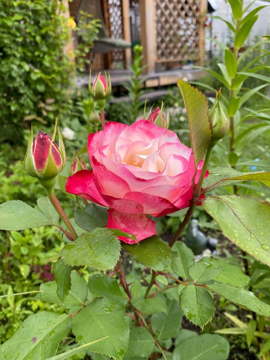 Ещё красоты в ленту. Роза флорибунда. Сорт Жюбиле Де Принц Де Монако ( вот такое длинное название). Долго приспосабливалась к почве моего участка. Делала для неё разные составы грунтов. И вот всё получилось. Ей всё понравилось и она решила в этом году порадовать шикарным крупным цветком . Теперь можно полюбоваться красотой этой розы. Рост розы 80 см