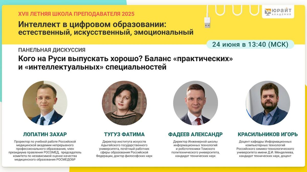 ⚡️ В рамках XVII Летней школы преподавателя на образовательной платформе Юрайт состоялась панельная дискуссия «Кого на Руси выпускать хорошо? Баланс «практических» и «интеллектуальных» специальностей»