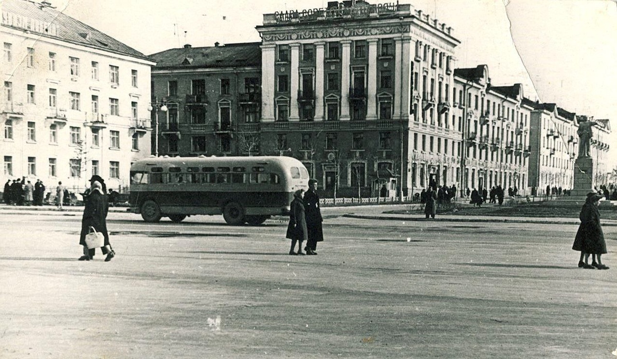 60-е...Фото с видом от ДК Островского на улицу Культуры (в наши дни ул.Леонтичука). А Какой автобус?! И еще памятник Ленину стоит.