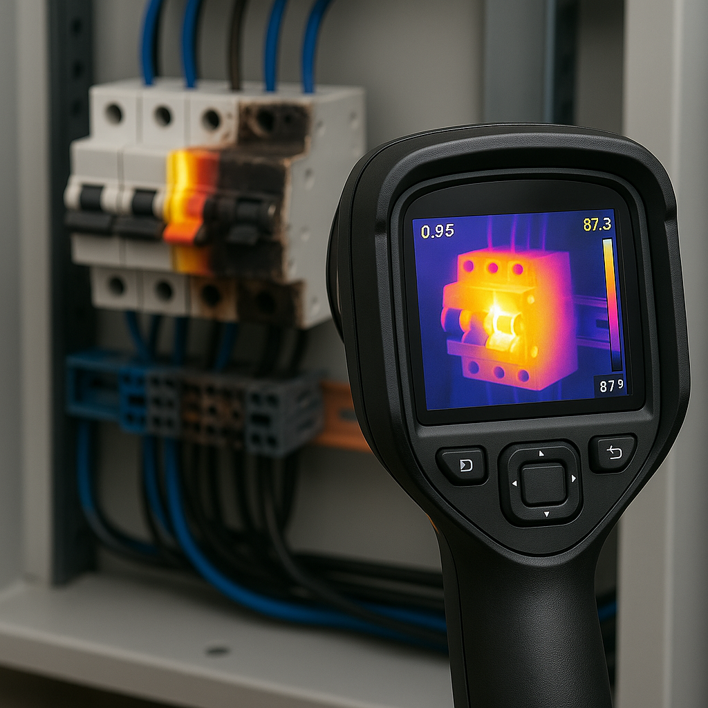 Современные тепловизоры превращают невидимые проблемы в четкие термограммы, показывая то, что скрыто от обычного осмотра: По данным Ростехнадзора: 30% пожаров на промоборудовании возникают из-за перегрева электроцепей, который можно было обнаружить заранее. Этапы профессионального обследования: Объект: Производственный цех (нагрузка 250 кВт) Обнаружено: