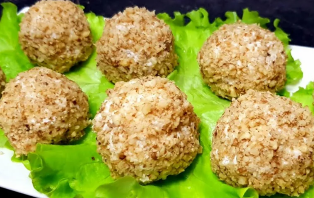 Кальмары отварить в подсоленной воде 3 минуты. Пропустить через мясорубку. Сыр натереть на мелкой тёрке. Всё перемешать (по желанию можно добавить измельченный чеснок). Добавить совсем немного майонеза, чтобы можно было свалять шарики. Размер шариков - как раз с конфетку "Рафаэлло". Если хотите, можно и покрупнее. Грецкие орехи подсушить в духовке, раздавить скалкой на разделочной доске. Обвалять каждый шарик в крошку из грецких орехов. "РАФАЭЛЛО" из кальмаров готово! ☝☝☝Обязательно хорошо охладить! Перед подачей на стол выложить шарики на плоское блюдо поверх листьев салата. Всем мира, добра, красоты!