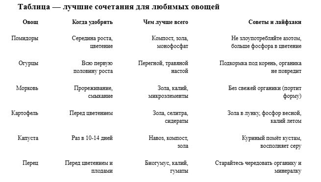 главное — не количество, а грамотное сочетание подкормок, и регулярность. Даже один дополнительный приём удобрения “по делу” может подарить вам невероятный урожай.