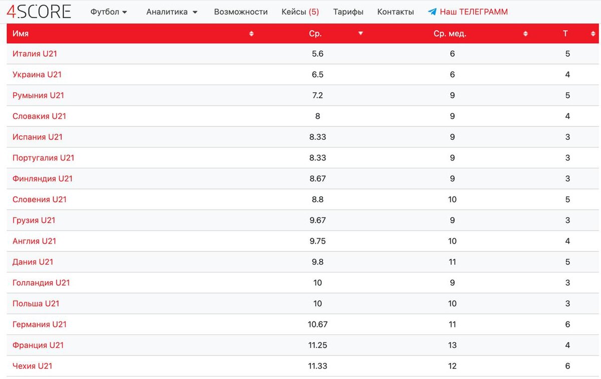 🏆Чемпионат Европы до 21 лет🏆 👉РЕЙТИНГ КОМАНД по показателю УДАРЫ В СТВОР