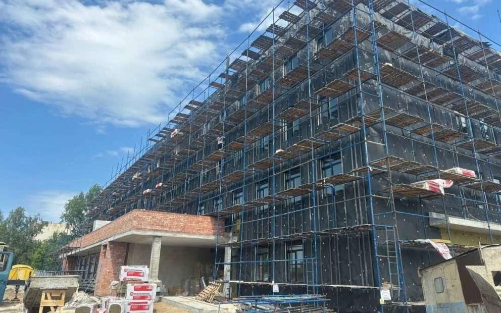 Рабочие завершили возведение монолитного каркаса всех этажей и приступили к внутренней и внешней отделке здания. Планируется, что все работы закончатся к 1 декабря текущего года.