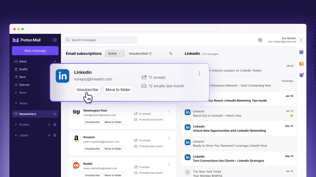 Если вы активно пользуетесь Proton Mail, но устали от бардака в почтовом ящике, у меня для вас отличные новости. На этой неделе швейцарская компания представила крупное обновление сервиса, включая новый режим просмотра рассылок, который поможет быстро разобраться с подписками и привести почту в порядок. Раньше в этом году Proton Mail уже внедрил лучшие функции из Gmail — например, категории и расширенные инструменты управления. Теперь разработчики сделали шаг вперёд и рассказали подробности нового режима «Newsletter View» — что это и почему он вам точно понравится. Вы, наверняка, слышали о проблемах Google Workspace, но стоит ли переходить на Proton? В этом году приложение Proton Mail для Android и iOS прошло серьёзное визуальное обновление. Помимо новых видов просмотра, таких как категории и вложения, появился режим «Newsletter View». Его задача — убрать хаос из почты, сохранив все ваши любимые рассылки и уведомления. А если захочется отписаться — сделать это быстро, просто и безопас